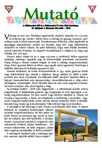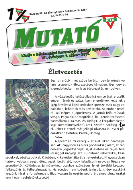 No mi Újság? Több újság volt már a KIE-ben, elsősorban a sok éven át futott a Vezess! említésre méltó. A Békéscsabai KIE is maga mögött tudhat néhány próbálkozást, ilyen volt a Szivárvány című, több évfolyamot megélt újság illetve a néhány számot megélt Mutató. A 2009-es év egyik - remélhetőleg komoly jövő előtt álló - munkája a Mutató újbóli, lényegében az előzőtől független feléledése. Új forma, új szerkesztőség és persze új tartalom is.